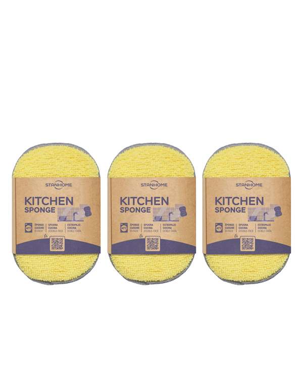 SPUGNA DOUBLE-FACE in microfibra. Composizione: Parte grattante - poliestere 88%, nylon 12% Parte microfibra - poliestere 87%, nylon 13%